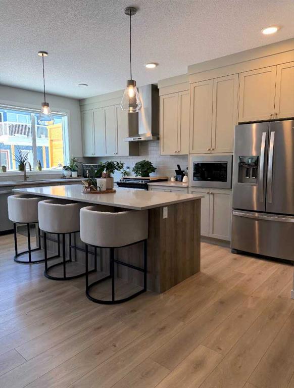 Includes: window coverings Site Influences: Back Yard, Lawn Property InformationProperty Type: Residential Detached Single Family Home Style: 2 Storey Year Built: 2024 Total Floor Area: 2,298 sq. ft. Brokerage: Town Residential Listed Date: Please login or create an account Community InformationCity/Town: Airdrie Community: Bayview ExteriorLot Size: 0.09 sq.ft. Lot Shape: Back Yard,Lawn Exterior: Stone, Vinyl Siding, Wood Frame Construction: Stone,Vinyl Siding,Wood Frame Frontage: 11 Front Exposure: E Roof: Asphalt Shingle Parking: Double Garage Attached Total Parking: 4 InteriorHeating: Forced Air Basement: Full Floor Finish: Carpet, Laminate, Tile Fireplace Details: For Sale RoomsTotal Bedrooms: 4 (Bedrooms Above: 4) Bathrooms: Full: 2 / Half: 2 Above Grade: 7 Legal, Financial & PossessionZoning: R1-U Legal Description: Lot/Unit: Lot/Unit:,Plan: 2310879,Block: Tax: 3640.00 Possession: 45 days / Neg Occupancy: Owner Restrictions: None Known Listing Courtesy of Town Residential The data included in this display is deemed to be reliable, but is not guaranteed to be accurate by the Calgary Real Estate Board. MLS®: A2295427 - Bayview 2 Storey $819,900