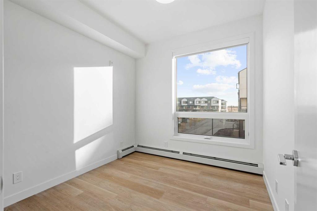 BRAND NEW CORNER UNIT | 2 BED / 2 BATH / 802 SQ FT | MODERN FINISHES | LOW CONDO FEES | UNDERGROUND TITLED PARKING – Welcome to East Hills by Minto Communities, an award-winning Canadian builder with over 70 years of experience. This condo complex is located in the growing community of Belvedere, just steps from East Hills Shopping Centre. Designed to foster a true sense of community, East Hills features pedestrian pathways, nearby greenspace, and a walkable, neighbour-friendly layout. Enjoy unbeatable convenience with Costco, Walmart, banks, restaurants, and everyday essentials right across the street, along with quick access to major roadways and public transit for an easy commute downtown or around the city. This brand-new corner 2 bedroom, 2 bathroom condo offers a smart and functional layout with a well-designed living space and modern finishes throughout. The kitchen sits at the heart of the home and features a large island, stainless steel appliances, and ample cabinetry and storage. Just off the kitchen is the dedicated dining area, which leads to your private southwest-facing balcony—perfect for soaking up the sun and enjoying summer evenings. Back inside, the spacious living room is located across from the kitchen, creating a bright and inviting open-concept layout ideal for both everyday living and entertaining. The thoughtfully designed split-bedroom floor plan provides excellent privacy. The primary bedroom is generously sized and includes a walk-in closet and a 3-piece ensuite. The second bedroom is also well-sized and features a walk-through closet with a pocket door that connects directly to the additional 4-piece bathroom—an ideal setup for guests, roommates, or a home office. Additional storage and in-suite laundry are conveniently located at the front of the home beside the foyer, completing this functional and well-appointed condo. Additional highlights include underground titled parking, a pet-friendly building (with restrictions), access to an on-site fitness centre located in Building 3000, and a rooftop patio in Building 1000 + Building 4000—available to all residents—enhancing the lifestyle appeal of this low-maintenance home. With modern design, low condo fees, and an exceptional location, this is an excellent opportunity for first-time buyers, investors, or those looking to downsize in one of southeast Calgary’s most convenient communities. Contact Minto’s sales staff and book your visit today! MLS®: A2285223 - Belvedere Apartment-Single Level Unit $349,990