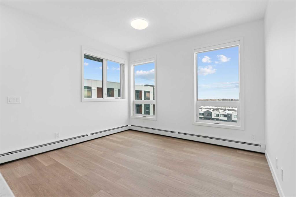 BRAND NEW CORNER UNIT | 2 BED / 2 BATH / 817 SQ FT | MODERN FINISHES | LOW CONDO FEES | UNDERGROUND TITLED PARKING – Welcome to East Hills by Minto Communities, an award-winning Canadian builder with over 70 years of experience. This condo complex is located in the growing community of Belvedere, just steps from East Hills Shopping Centre. Designed to foster a true sense of community, East Hills features pedestrian pathways, nearby greenspace, and a walkable, neighbour-friendly layout. Enjoy unbeatable convenience with Costco, Walmart, banks, restaurants, and everyday essentials right across the street, along with quick access to major roadways and public transit for an easy commute downtown or around the city. This brand-new corner 2 bedroom, 2 bathroom condo offers a smart and functional layout with well-designed living space and modern finishes throughout. The kitchen sits at the heart of the home and features a large island, stainless steel appliances, and ample cabinetry and storage. Just off the kitchen is the dedicated dining area, which leads to your private southeast-facing balcony—perfect for soaking up the sun and enjoying summer evenings. Back inside, the spacious living room sits across from the kitchen, creating a bright and inviting open-concept layout ideal for both everyday living and entertaining. The thoughtfully designed split-bedroom floor plan provides excellent privacy. The primary bedroom is located at the back of the home and is generously sized, featuring a walk-in closet and a 3-piece ensuite. The second bedroom is also well-sized, with a 4-piece bathroom conveniently located just beside it—an ideal setup for guests, roommates, or a home office. Additional storage and in-suite laundry are located at the front of the home beside the foyer, completing this functional and well-appointed condo. Additional highlights include underground titled parking, a pet-friendly building (with restrictions), access to an on-site fitness centre located in Building 3000, and a rooftop patio in Building 1000 and Building 4000—available to all residents—enhancing the lifestyle appeal of this low-maintenance home. With modern design, low condo fees, and an exceptional location, this is an excellent opportunity for first-time buyers, investors, or those looking to downsize in one of southeast Calgary’s most convenient communities. Contact Minto’s sales staff and book your visit today! MLS®: A2292747 - Belvedere Apartment-Single Level Unit $362,900