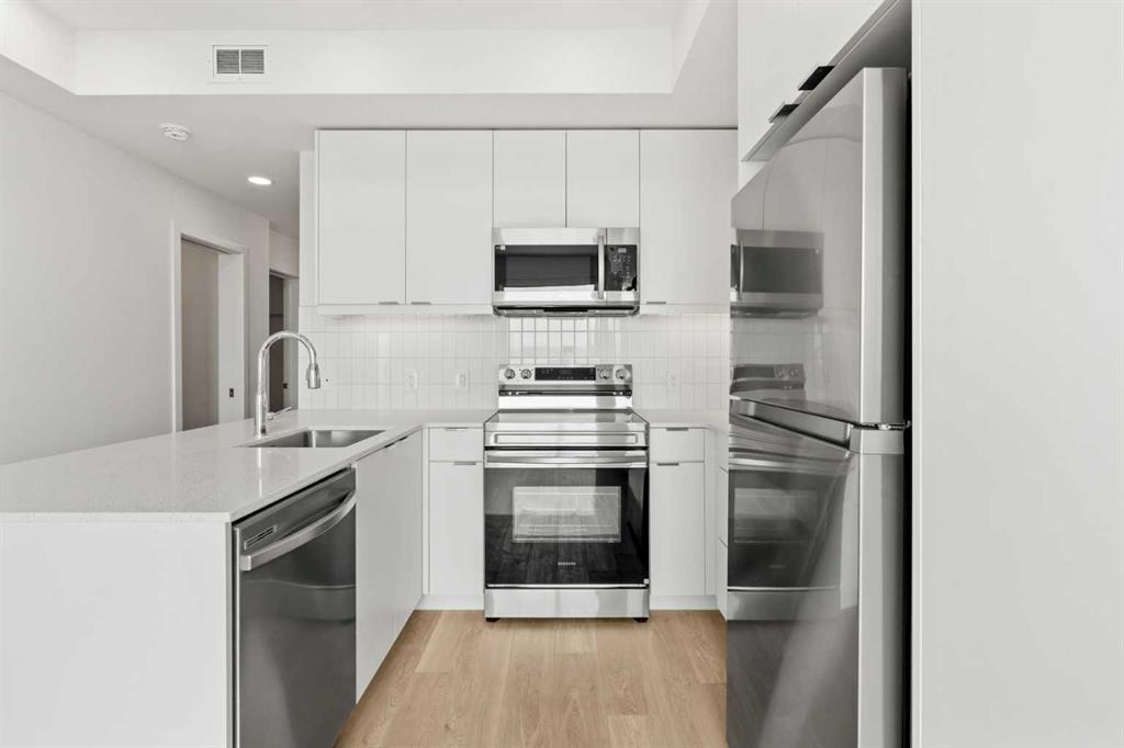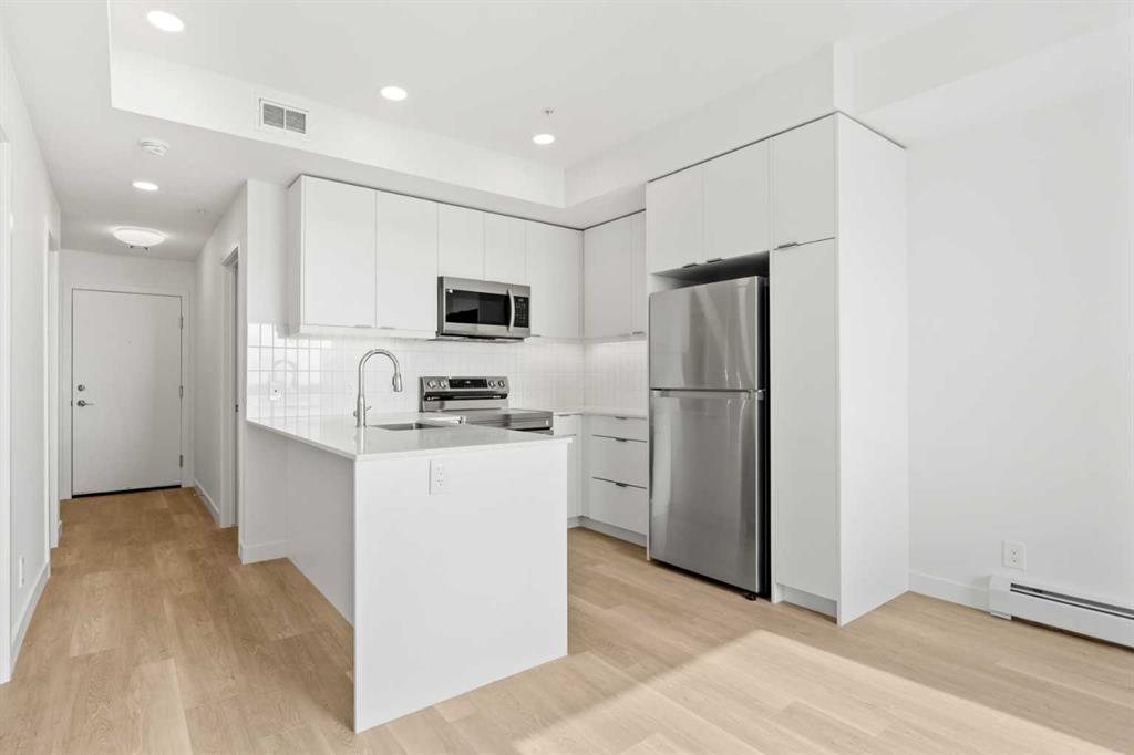 BRAND NEW | 2 BED / 2 BATH / 641 SQ FT | MODERN FINISHES | LOW CONDO FEES | TITLED PARKING – Welcome to East Hills by Minto Communities, an award-winning Canadian builder with over 70 years of experience. This condo complex is located in the growing community of Belvedere, just steps from East Hills Shopping Centre. Designed to foster a true sense of community, East Hills features pedestrian pathways, nearby greenspace, and a walkable, neighbour-friendly layout. Enjoy unbeatable convenience with Costco, Walmart, banks, restaurants, and everyday essentials right across the street, along with quick access to major roadways and public transit for an easy commute downtown or around the city. This brand-new 2 bedroom, 2 bathroom condo offers a smart and functional layout with 641 sq ft of well-designed living space and modern finishes throughout. The kitchen is centrally located within the home and features a large peninsula, stainless steel appliances, and ample cabinetry for storage. The open-concept design flows seamlessly into the living area at the back of the home, where you’ll find access to the south-facing balcony—ideal for relaxing, entertaining, or enjoying summer evenings. The thoughtfully designed split-bedroom layout provides added privacy, with bedrooms located on either side of the home. The primary bedroom is situated beside the living room and includes a walk-in closet and an ensuite bathroom. The second bedroom is located just beside the foyer and is positioned near the additional 3-piece bathroom—an ideal setup for guests, roommates, or a home office. You’ll also find additional storage, in-suite laundry, and a front closet conveniently located near the entry, completing this functional and well-appointed condo. Additional highlights include titled parking, a pet-friendly building (with restrictions), access to an on-site fitness centre located in Building 3000, and a rooftop patio in Building 1000—both available to all residents—enhancing the lifestyle appeal of this low-maintenance home. With modern design, low condo fees, and an exceptional location, this is an excellent opportunity for first-time buyers, investors, or those looking to downsize in one of southeast Calgary’s most convenient communities. Contact Minto’s sales staff and book your visit today! MLS®: A2292748 - Belvedere Apartment-Single Level Unit $285,900