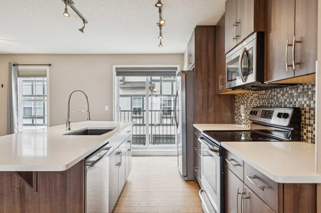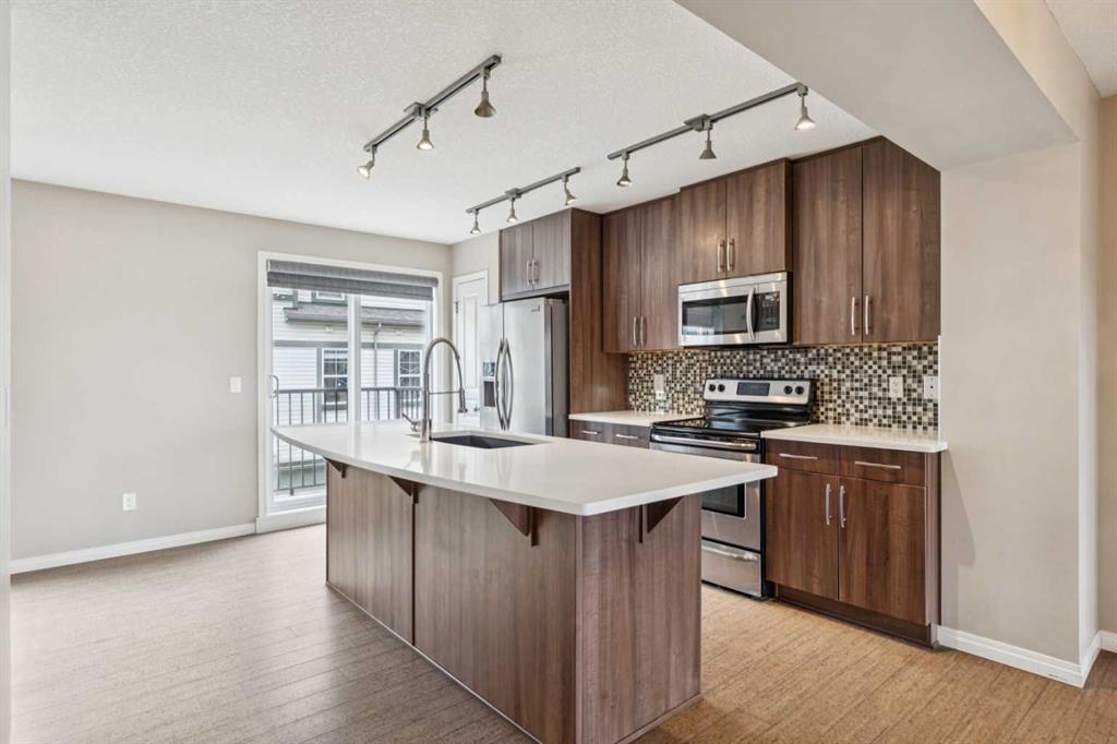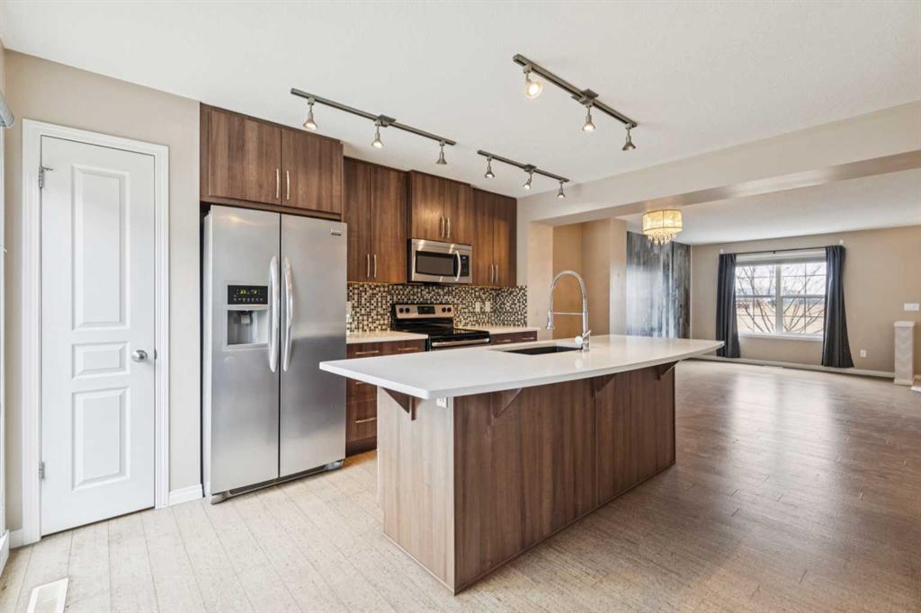 Welcome to Cranston! This three-bedroom townhouse with a double attached garage is the one you have been waiting for. As you enter this open concept floor plan, cork floo... MLS®: A2297615 - Cranston 2 Storey $449,900