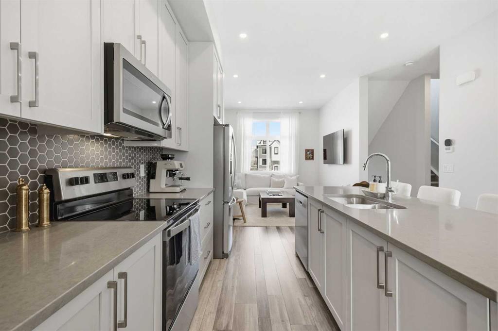Includes: Curtains in primary bedroom & on main floor. Site Influences: Low Maintenance Landscape, Rectangular Lot Property InformationProperty Type: Row/Townhouse Home Style: 2 Storey Year Built: 2022 Total Floor Area: 1,384 sq. ft. Brokerage: RE/MAX First Listed Date: Please login or create an account Community InformationCity/Town: Calgary Community: Douglasdale/Glen ExteriorLot Shape: Low Maintenance Landscape,Rectangular Lot Exterior: Composite Siding, Stone, Stucco, Wood Frame Construction: Composite Siding,Stone,Stucco,Wood Frame Front Exposure: N Roof: Asphalt Shingle Parking: Double Garage Attached Total Parking: 2 InteriorHeating: Heat Pump Basement: Partial Floor Finish: Carpet, Vinyl Plank Fireplace Details: For Sale RoomsTotal Bedrooms: 2 (Bedrooms Above: 2) Bathrooms: Full: 2 / Half: 1 Above Grade: 5 Legal, Financial & PossessionZoning: M-C1 Legal Description: Lot/Unit: Lot/Unit:,Plan: 2110851,Block: Tax: 3803.00 Monthly Fee: 307 Possession: 60 Days / Neg Occupancy: Owner Restrictions: Cats OK,Dogs OK Listing Courtesy of RE/MAX First The data included in this display is deemed to be reliable, but is not guaranteed to be accurate by the Calgary Real Estate Board. MLS®: A2298166 - Douglasdale/Glen 2 Storey $609,900