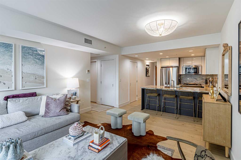 Discover the ultimate condo living experience in this stunning 2 bed + den unit at Evolution by Bosa Developments, nestled in the vibrant East Village of Downtown Calgary... MLS®: A2282831 - Downtown East Village Apartment-Single Level Unit $549,900