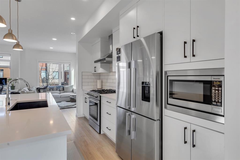 | Open House Saturday March 28th from 2-4pm | Welcome to the Amara Corner Lot Design Plan in Greenwich NW Calgary. This New York–inspired executive townhome offers 1,584 square feet of open-concept living in one of Calgary’s most desirable northwest communities. Featuring a 3-bedroom + den layout with 3.5 bathrooms, this thoughtfully designed home includes a double-wide garage with a single oversized door and a private driveway, maximizing both parking and storage. Professionally curated interior colour packages and an abundance of builder upgrades elevate the home throughout. Crafted with attention to detail, the residence showcases exceptional finishes paired with outstanding natural light. The north-facing frontage overlooks the community’s central courtyard and pathway system, while east-side and south-backing exposures flood the home with sunlight through expansive corner windows. Outdoor living is enhanced by a walkout exposed aggregate patio facing the courtyard and an elevated glass-panelled balcony, offering both privacy and scenic views. Inside, you’ll find luxury vinyl plank flooring on the main and lower levels, quartz countertops on all floors, 9-foot ceilings throughout, and stainless steel upgraded gourmet appliances, including a gas stove and chimney hood fan. High-efficiency features include triple-pane windows, a Navien on-demand tankless hot water system, and a heat recovery ventilator (HRV). This Amara corner plan is further enhanced by the Builder Show Home Package, adding a custom third full bathroom on the lower level, black interior door and bathroom accents, 8-foot solid interior passage doors, a full tile backsplash with custom grout design, and window coverings throughout. One of Landmark Homes’ most sought-after floor plans, this layout offers a functional galley kitchen with dedicated living and dining areas—perfect for entertaining and maximizing usable space. The exterior design channels classic New York brownstone style with James Hardie paneling, full brick accents, and stucco finishes for a contemporary, low-maintenance lifestyle. Ideally located just 18 minutes from downtown Calgary, 12 minutes to the University of Calgary and Foothills Hospital, under an hour to Banff and Canmore, and within walking distance to the new Calgary Farmers’ Market, this home offers unmatched convenience and community living. Book your showing today and discover what makes Greenwich NW an exceptional place to call home. MLS®: A2294428 - Greenwood/Greenbriar 3 (or more) Storey $609,000