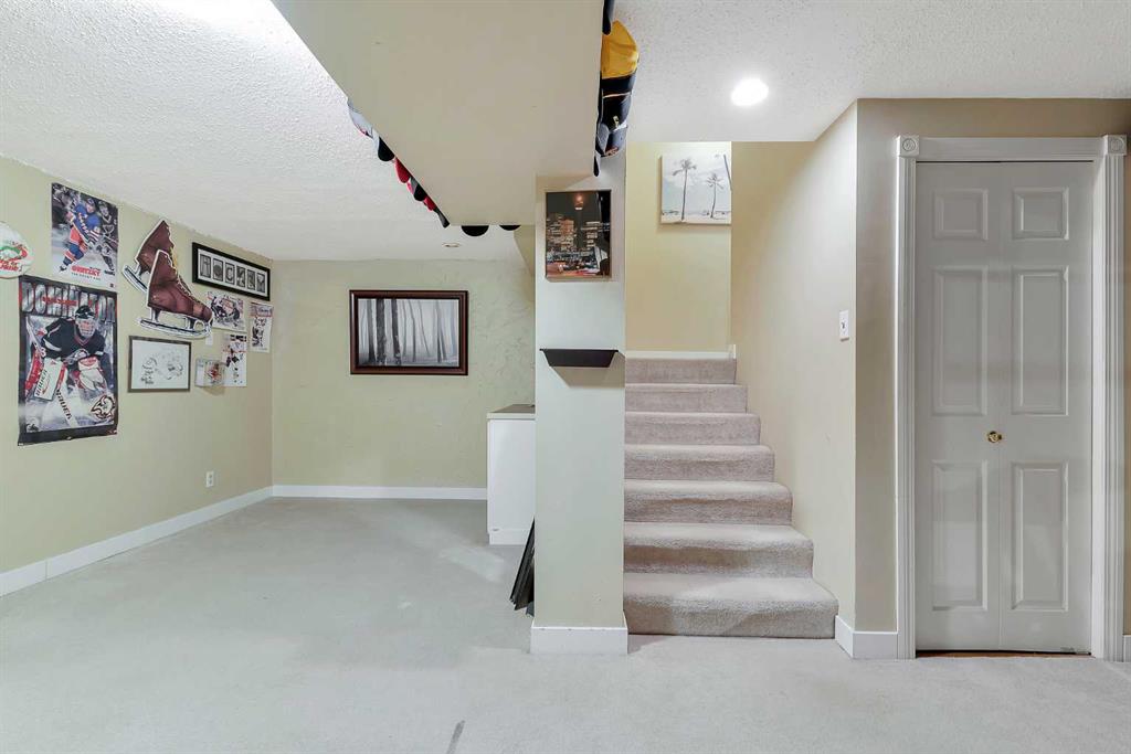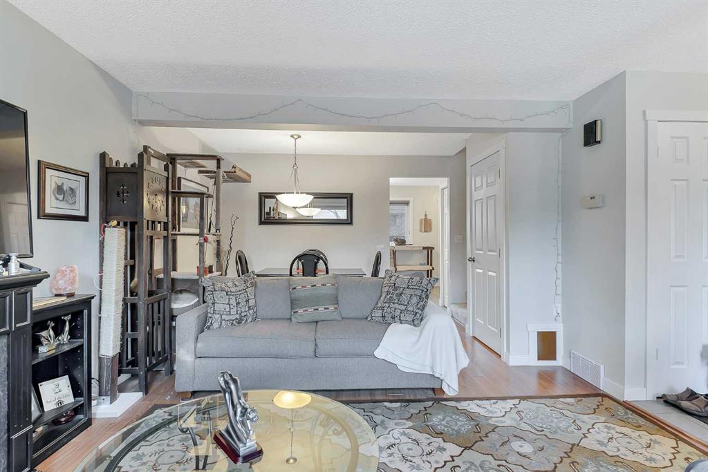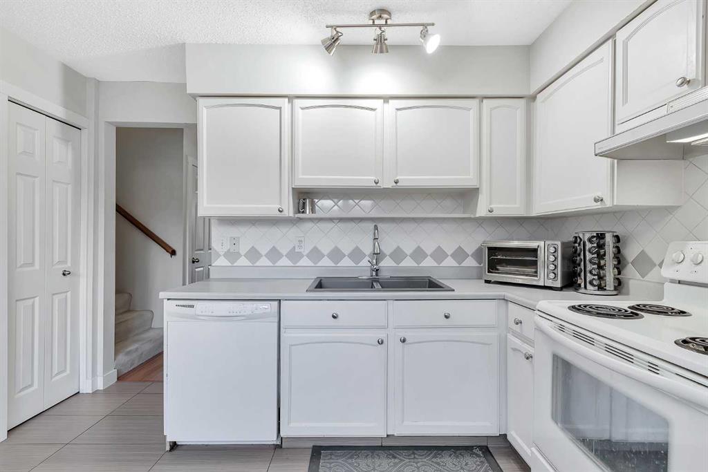 Updated 2 storey End unit Townhome in Palliser , situated in a great location within this desirable complex . Newer showcase windows with updated window coverings on the main make this home bright and inviting . Newer flooring throughout the main level with laminate hardwood in the living room and a sleek tile in the kitchen and front foyer . Upper level carpets and tile in the main bath . All new doors throughout the home . The kitchen updates include : Counter-tops , backsplash and flooring . Large closet / pantry with additional storage neatly concealed allows for plenty of extra space . The 2 piece powder bath has been updated .This lovely home has 3 generous sized bedrooms up with the primary suite having a large walk-in closet . The lower level is fully finished includes a wet bar , lower level family room and plenty of storage. Parking stall right out front . A sunny east facing deck is great for entertaining outside , new private fencing on these units is evident in this extremely well run complex . Additional parking stall may be available through the Condo Association MLS®: A2301493 - Palliser 2 Storey $399,900