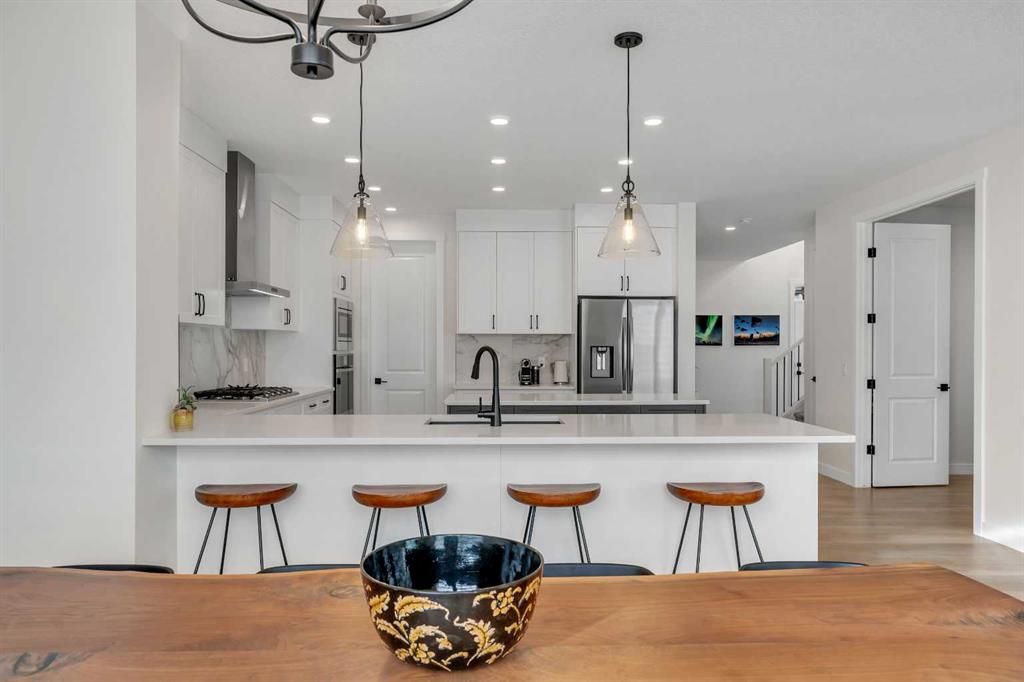 Welcome to 649 Sailfin Drive, located in the brand new lake community of Harmony just 10 minutes west of Calgary and approximately 30 minutes to the mountains, where you are buying more than just a home but a true lifestyle. This 2025 Daytona built home presents like new and features numerous upgrades throughout including being situated on an oversized lot and in one of the most desirable phases of Harmony within walking distance to the lake and community amenities. Offering over 2600 sq ft of living space with 3 bedrooms and 2.5 bathrooms, the layout is both functional and thoughtfully designed for families. The main floor welcomes you with a large foyer, private office with French doors, 2 piece powder room, and a spacious living room centred around a gas fireplace, perfect for family time or entertaining after a day at the lake. The dining area flows seamlessly into the chef’s kitchen, showcasing full height custom cabinetry, a gas range, built in wall oven and microwave, quartz countertops throughout, a large breakfast bar, and an oversized island with plenty of space for a growing family. This level is completed by a massive walk through pantry that connects to the mudroom with custom lockers and direct garage access, ideal for busy households. Upstairs you will find a large bonus room, 3 bedrooms, and a well planned layout. The primary bedroom measures approximately 14.5 by 15.6 ft and features a large walk in closet along with a spa inspired ensuite offering a double vanity, custom stand up shower, and standalone soaker tub. The second and third bedrooms are generously sized and each includes a large walk in closet. You will also find a spacious laundry room with sink and a full 4 piece bathroom on this level. Mechanical highlights include 2 high efficiency furnaces, 2 central A C systems, and a sump pump. Additional upgrades include a custom high end blind package throughout, railing upgrades, and many more. Why wait 12 months for a new home when you can move in today and save the GST. Set in the award winning community of Harmony with its 2 private lakes, world class golf at Mickelson National, extensive pathway system, playgrounds, and future village centre, this home offers an exceptional blend of comfort, quality, and lifestyle. Please book your private shwoing today. MLS®: A2283996 - Harmony 2 Storey $919,900